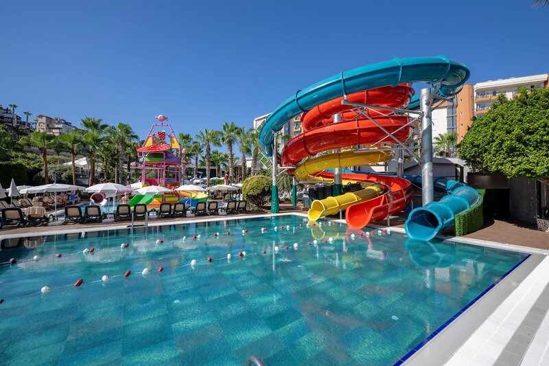 Lage & Umgebung: Nur durch eine Straße vom breiten Strand getrennt. Einkaufs- und Unterhaltungsmöglichkeiten sind nach wenigen Gehminuten erreicht. Der Flughafen Antalya ist etwa 90 km entfernt.