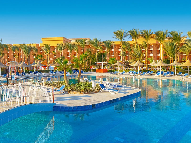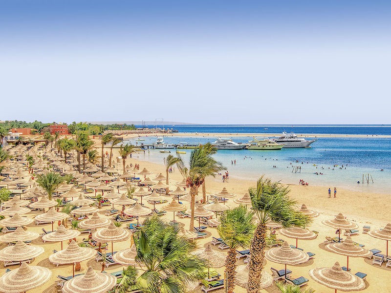 Lage & Umgebung Das Hotel, bestehtend aus mehreren Gebäuden und Bungalows, befindet sich direkt am ca. 200 m langen, flach abfallenden Sandstrand, der sehr gut für Kinder und Nichtschwimmer geeignet ist. Das Zentrum von Hurghada ist ca. 8 km entfernt. Zum Flughafen Hurghada sind es ca. 3 km.