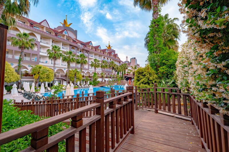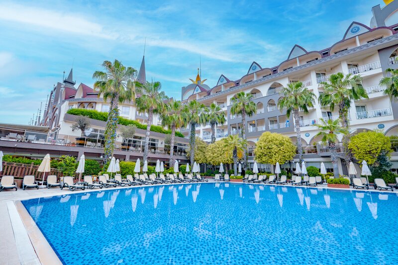 Lage & Umgebung Das Hotel liegt nur 400 m vom hoteleigenen Sandstrand entfernt. Ein Shuttleservice dorthin wird angeboten. Unterhaltungs- und Einkaufsmöglichkeiten finden Gäste im ca. 7 km entfernten Side.