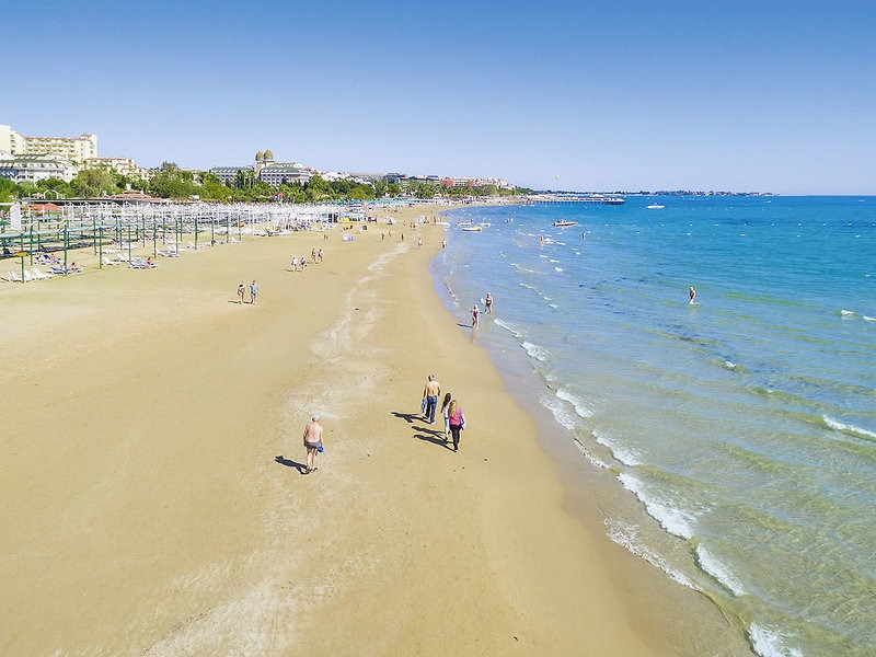 - Strand „Beach“: feinsandig, flach abfallend, Shuttletransfer: ohne Gebühr, öffentlich mit eigenem Hotelabschnitt, Liegen: ohne Gebühr, Sonnenschirme: ohne Gebühr