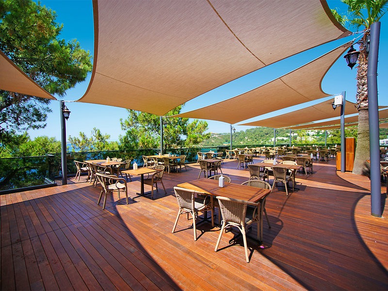 - Hauptrestaurant „Begonvil“: Diätküche, leichte Gerichte, saisonale Gerichte, vegetarische Gerichte, Buffet, Showcooking, Mai – Oktober, täglich, klimatisierbar, mit Terrasse, Raucherbereich, Kinderhochstuhl, angemessene Kleidung erwünscht