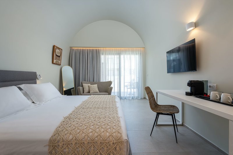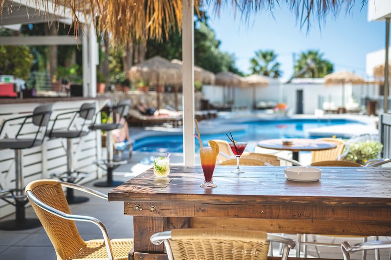 Ausstattung: Das als schauinsland-reisen-Original buchbare Hotel präsentiert sich mit viel Herz und Liebe zum Detail. Zusammen mit der überaus herzlichen und hilfsbereiten Art der Inhaberin und ihrem ebenso herzlichen Team steht einem typisch griechischen Urlaub „wie bei Freunden“ nichts im Wege. Gastfreundschaft wird hier gelebt! In dem kleinen Hotel in modernem Design verteilen sich die nur 86 komplett renovierten Zimmern auf 2 Stockwerke im Haupthaus und im zum Sommer 2025 neu gebauten Nebengebäude mit sharingpool. Im Eingangsbereich befindet sich die klimatisierte Rezeption, Lobby, Bar mit zum Sommer 2025 neu gestalteten Terrasse und hier befindet sich die Sat.-TV Ecke, Wi-Fi ist in der Lobby und den Zimmern, im Restaurant und am Pool verfügbar (inklusive) und verschiedene Spiele (gegen Gebühr). Im kleinen, liebevoll angelegten Garten befindet sich der ebenfalls renovierte Swimmingpool, die Sonnenterrasse mit Liegen und Schirmen und die Pool-/Snackbar.