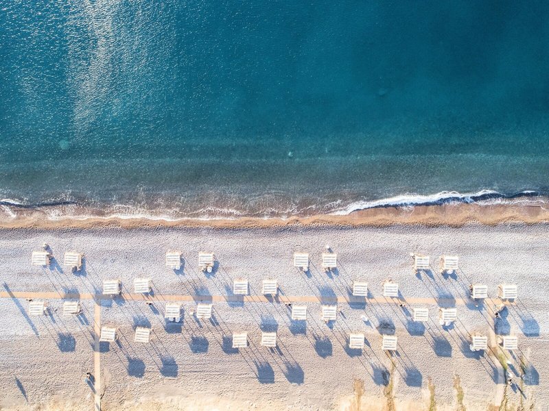 - Strand: Kies, flach abfallend, Liegen: ohne Gebühr, Sonnenschirme: ohne Gebühr